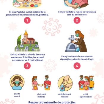 În ajunul Sărbătorilor de Paști, Direcția Generală Asistență Socială și Sănătate îndeamnă locuitorii capitalei să respecte măsurile de protecție, să evite vizitele la rudele în vârstă sau care au boli cronice și întâlnirile în grupuri mari de rude și prieteni. 1) În ziua Paștelui, evitați întâlnirile în grupuri mari de persoane (rude, prieteni). 2) Evitați vizitele la rudele în […]